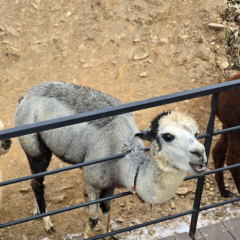 동물들과 시간을 보내기에 좋은 곳입니다. 개장 직후, 알파카들이 방문객들 사이를 돌아다니는 쇼가 펼쳐지고, 무료 먹이를 줄 수도 있습니다. 나중에는 동물 사료를 파는 자판기가 있는데, 직접 먹이를 줄 수도 있습니다. 알파카 외에도 토끼, 사슴, 새 등 다양한 동물들이 있습니다. 투어 중에는 스탬프를 모아 기념품 가게에 제시하면 귀여운 알파카 스티커를 받을 수 있습니다. 이 명소는 언덕에 위치해 있지만 오르막길이 완만해서 온 가족과 함께 몇 시간(2시간, 어쩌면 3시간) 즐거운 시간을 보낼 수 있습니다. 동물 구역에는 바로 음식을 제공하는 곳이 없지만 입구 앞에 카페가 있습니다. 특히 아이가 있는 가족에게는 흥미로운 선택이지만, 하루 종일 여행하기에는 적합하지 않습니다. 우리는 즐거운 시간을 보냈고 동물들의 상태도 좋았습니다. 다만 공작새의 깃털이 빠진 것이 아쉬웠습니다.