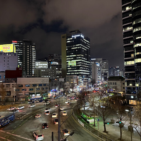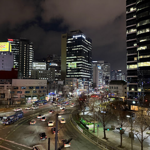 제가 여기서 가장 좋아하는 건 야경이에요. 건물과 스카이워크가 아름답게 빛납니다. 분위기가 좋고, 보는 것도 즐겁습니다. (참고: N서울타워와 가까워서 걸어서 갈 수 있어요.)