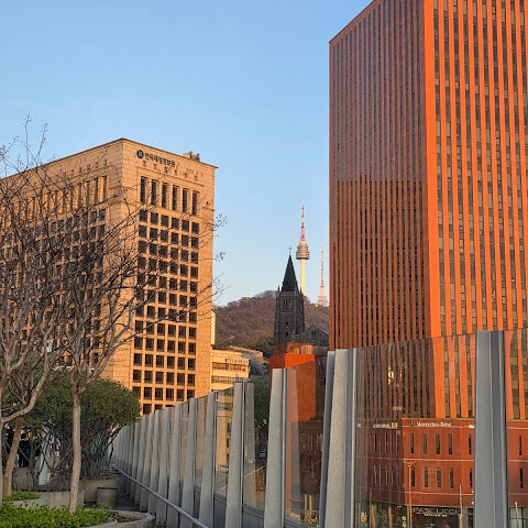 서울로 7017을 걸어서 명동 쇼핑가까지 가는 걸 좋아했습니다. 정말 잘 만들어졌고, 나무, 식물, 꽃들이 정말 잘 관리되어 있습니다. 도시의 아름다운 전망도 보입니다.