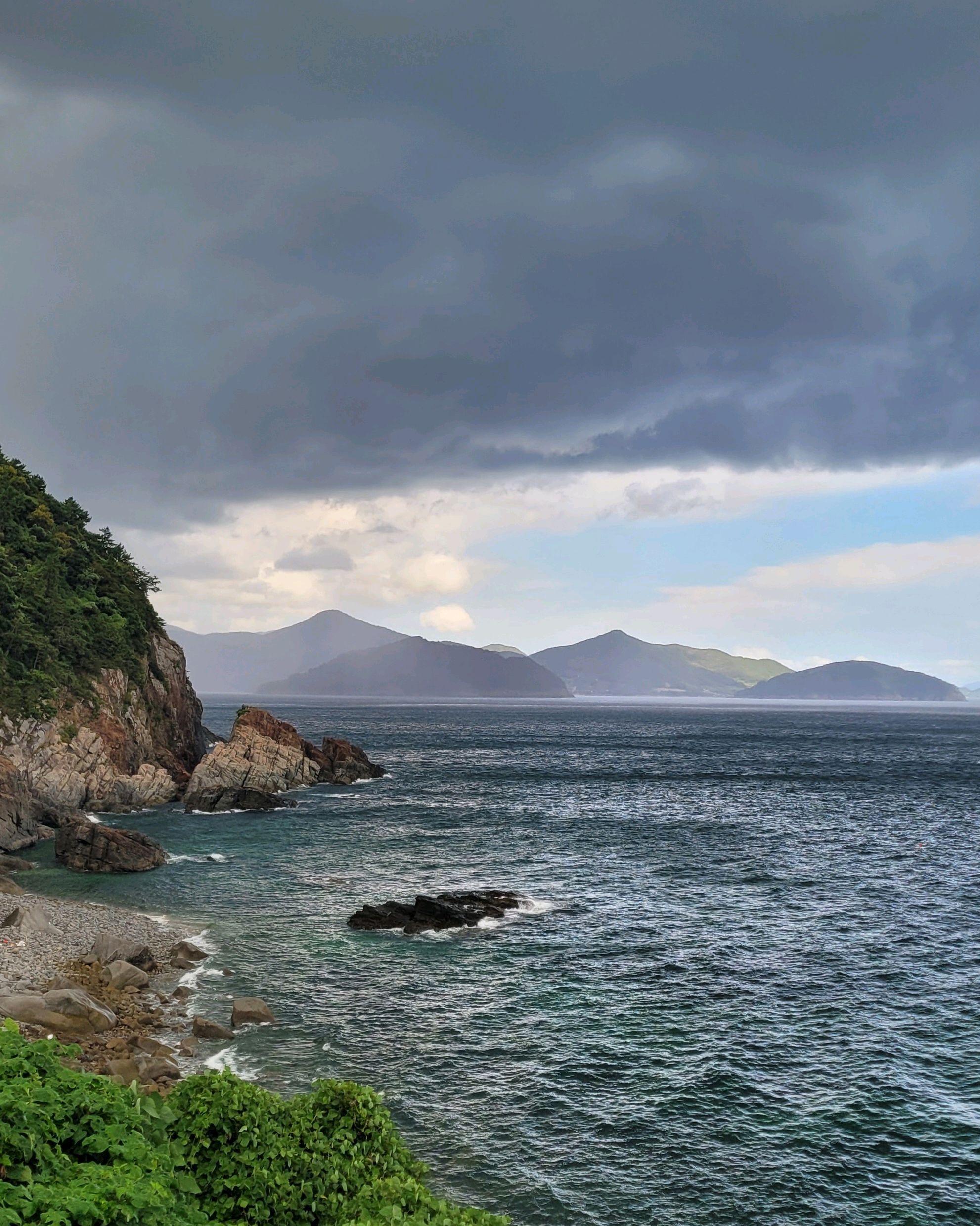 다랭이마을은 봄에는 유채꽃과 여름의 초록 가을에는 황금벼로 항상 밝고 평화로운 풍경이었지만. 오늘 만난 다랭이 마을의 바다는 먹구름과 소나기 검은 바닷물이 평소에 갖고있던 이미지와는 또 다른 자연을 경험하게 해주었다.