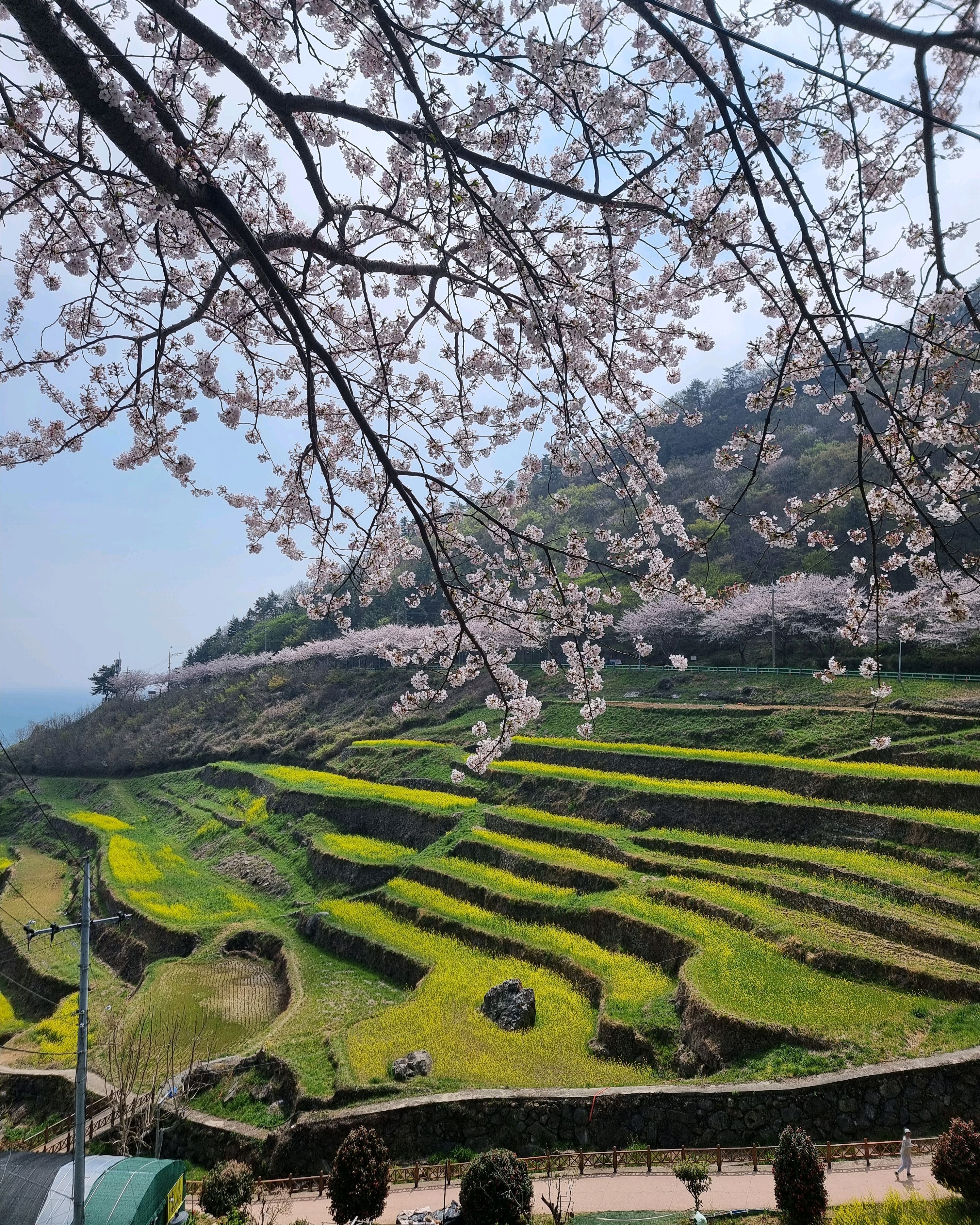 "다랭이마을" 유채꽃과 바다,다랭이 조합이 정말 좋아요👍 그 외에도 다랭이 식당들, 카페들도 많고요! 아직 벚꽃은 완벽히 개화는 되지 않았지만 예상 다음주 주말 ~ 다다음주 평일중에 벚꽃의 조합까지 더해 더욱더 아름다울거 같아요😃 잘 쉬다 갑니다^^