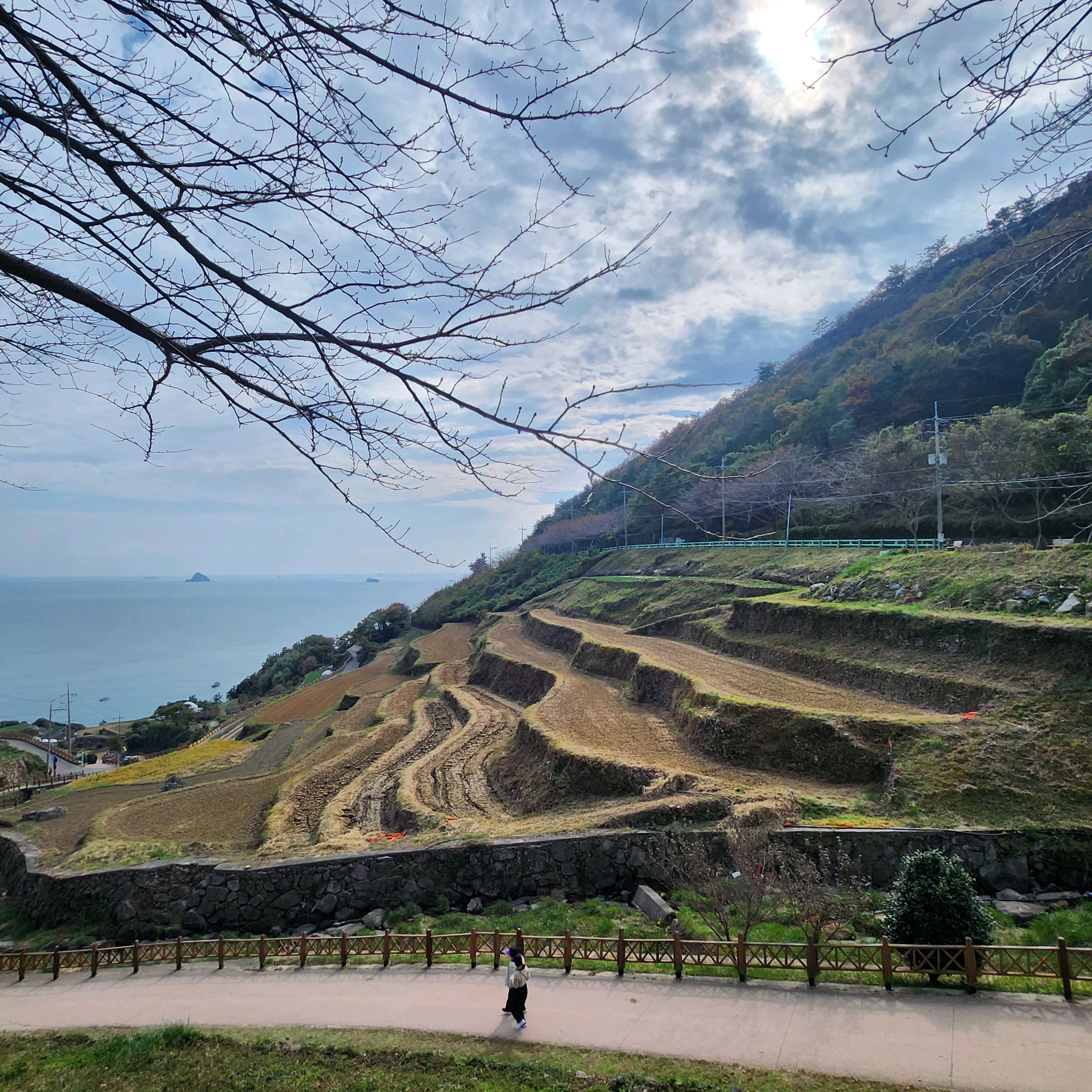 잘정리된 논과 바다의 풍경이 매우 아름다워요.