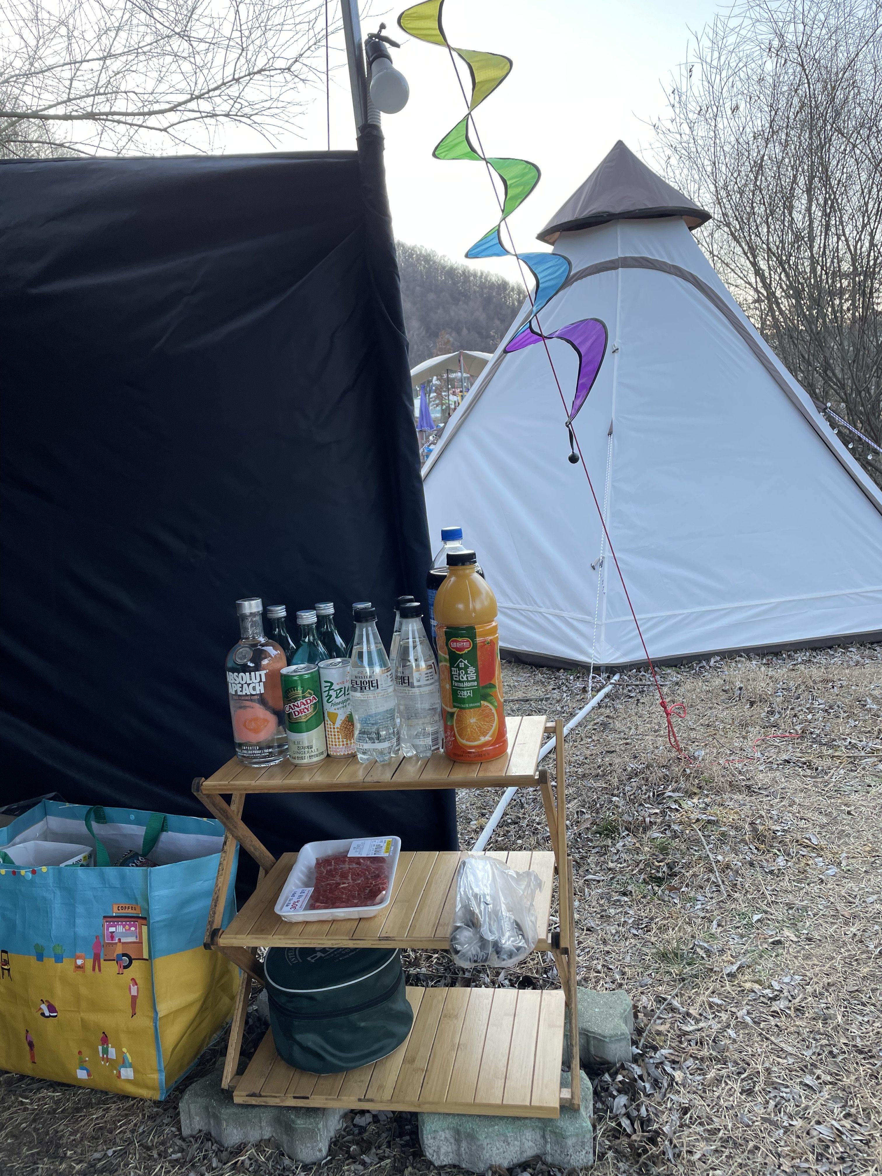 텐트 엄청작아요 진짜딱두명만가능합니다 일찍가시면 조금더나은 텐트자리확보하실수있어요 물가가쫙둘러싸여있어서 엄청습하기때문에 히터같은제품이있으면좋을것같아요 화장실은카페안화장실이용이고 개수대는카페뒷편 이용이라 거리감이좀있습니다 참고하셔요 당일피크닉으로 괜찮을것같아요