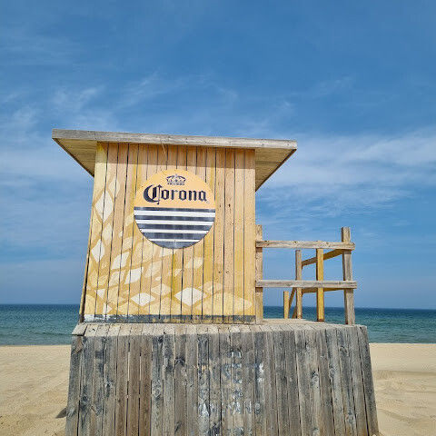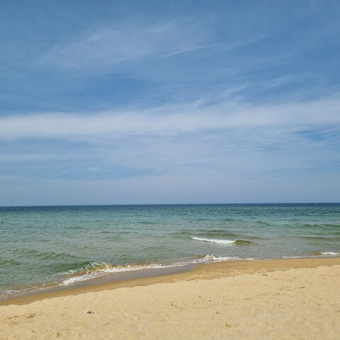해변은 조용하고, 바람이 많고, 날씨도 좋습니다. 우리는 6월에 갔는데, 날씨가 꽤 추웠지만, 일광욕을 하기에는 좋았습니다.