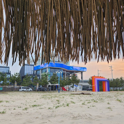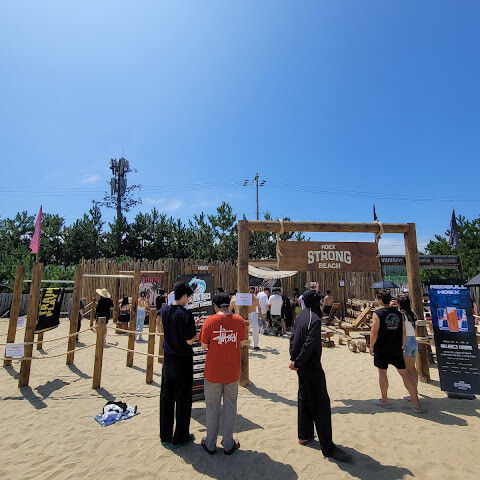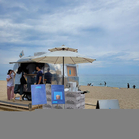 양양에서 그야말로 핫한 곳 중 하나. 해수욕장 개장 직전인데도 제법 사람들이 많이 오네요. 수영복 차림으로 아무렇지도 않게 다니는 분위기라 시선처리가 약간 힘들 수도. 하지만 의외로 가족단위로도 많이 찾고 있고 아이들도 간간히 보이네요. 폭염일 때 햇빛을 피해 선셋바에서 음료 한 잔하면서 쉬기도 좋아요.