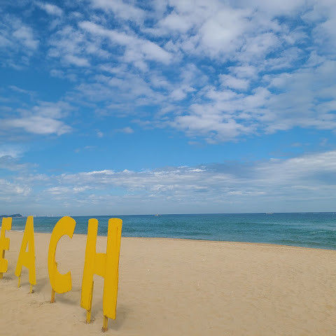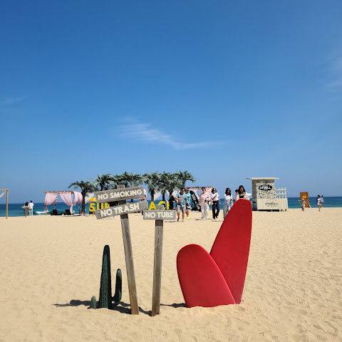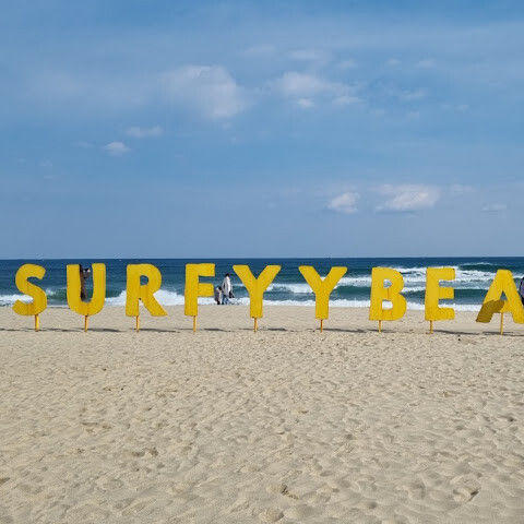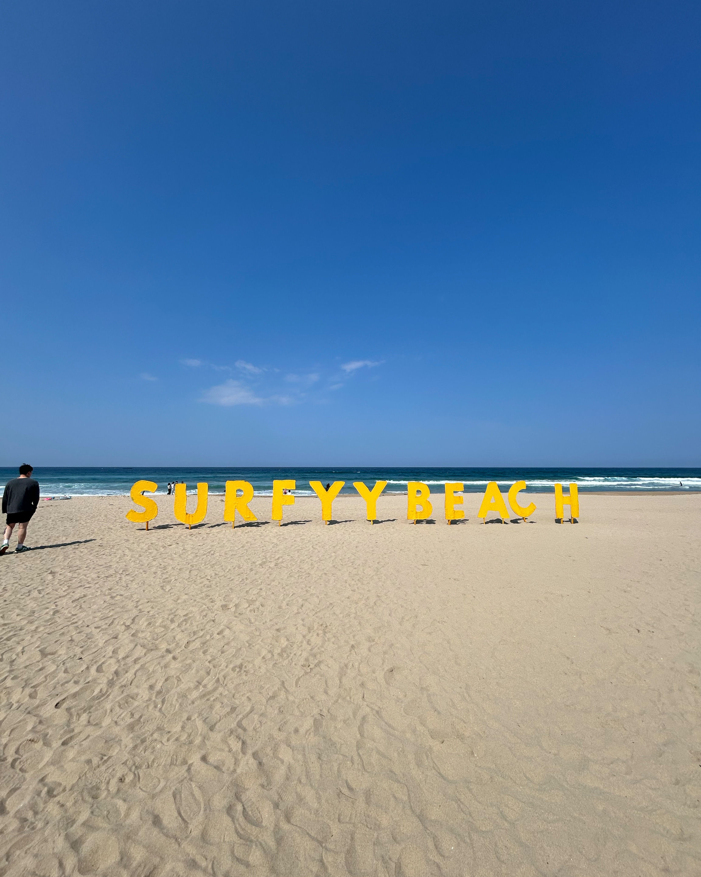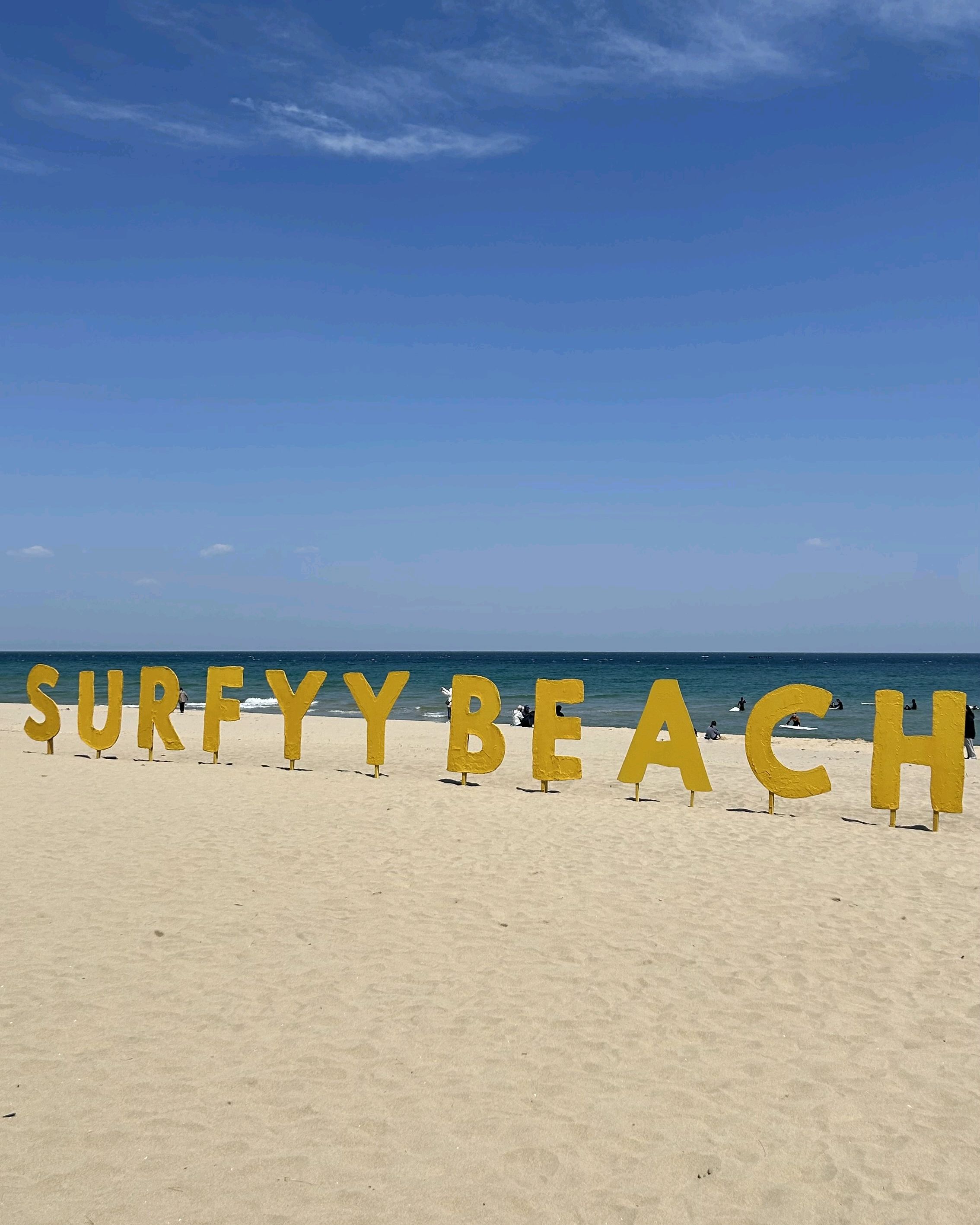 멋진 해변이네요. 예쁜 포토스팟과 팝업스토어,수많은 서핑보드,요가 플레이스...젊은 기운이 가득^^