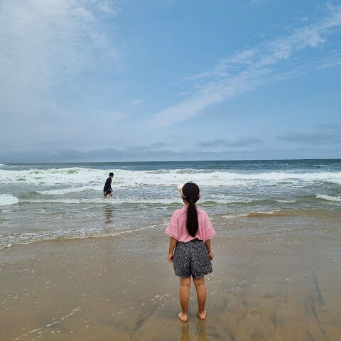 서피비치를 늘 사진만찍으러 갔었는데 이번연휴엔 서핑신청을 했는데 날씨도 바람도 너무 좋아서 첫서핑이 너무 만족스럽습니다! 딸과 아빠랑 신청했는데 정말 너무 신이나서 안 나오더라구요 머리긴 남자 선생님께서 눈높이에맞춰 잘 설명해주셔서 너무 좋았다고해요