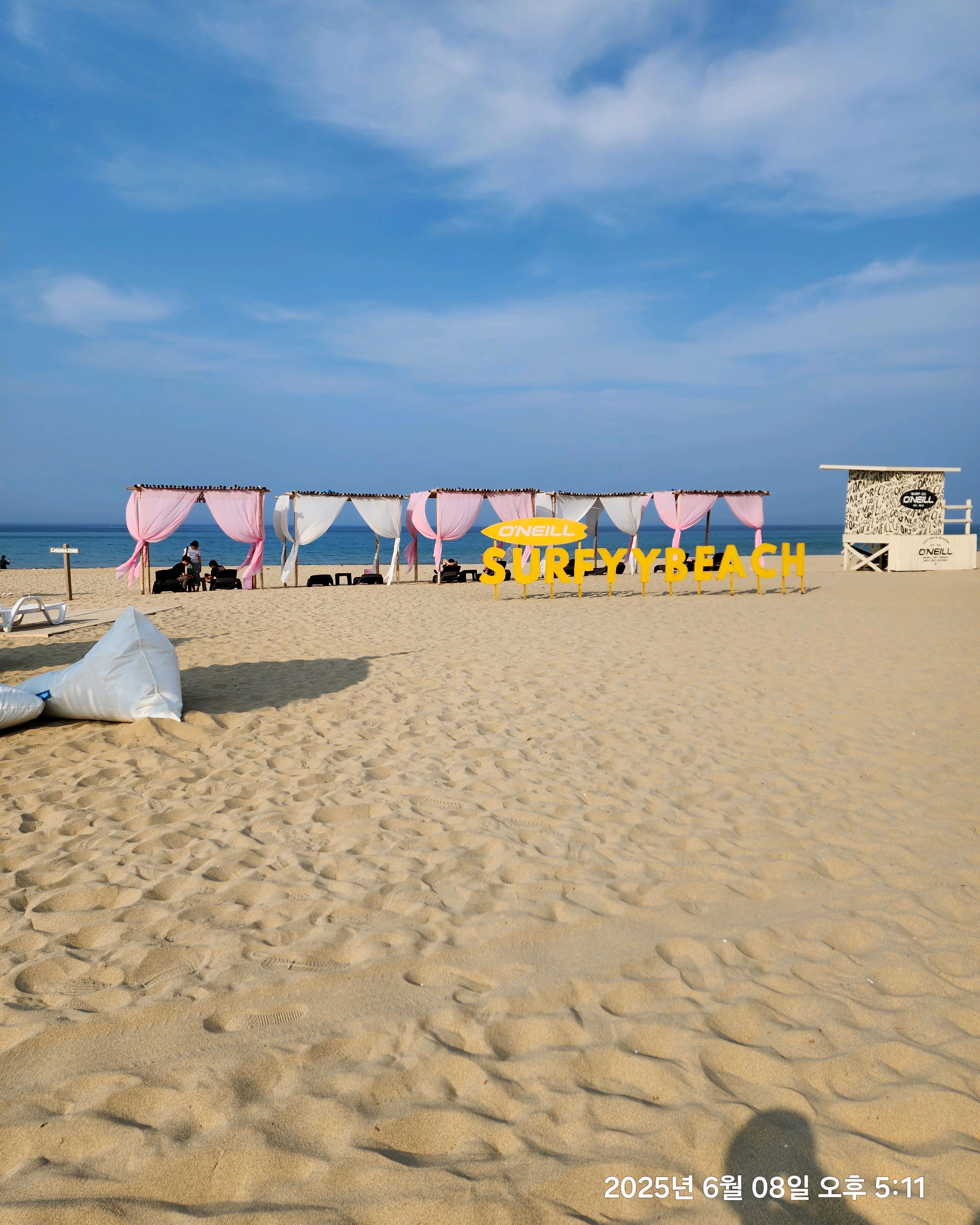 오늘 처음 방문했는데 오닐 서프스쿨우수 강습생 당첨 되어 즐겁게 서핑하고 갑니다. 다음 주 또 와야지! 파도 너무 좋아요!