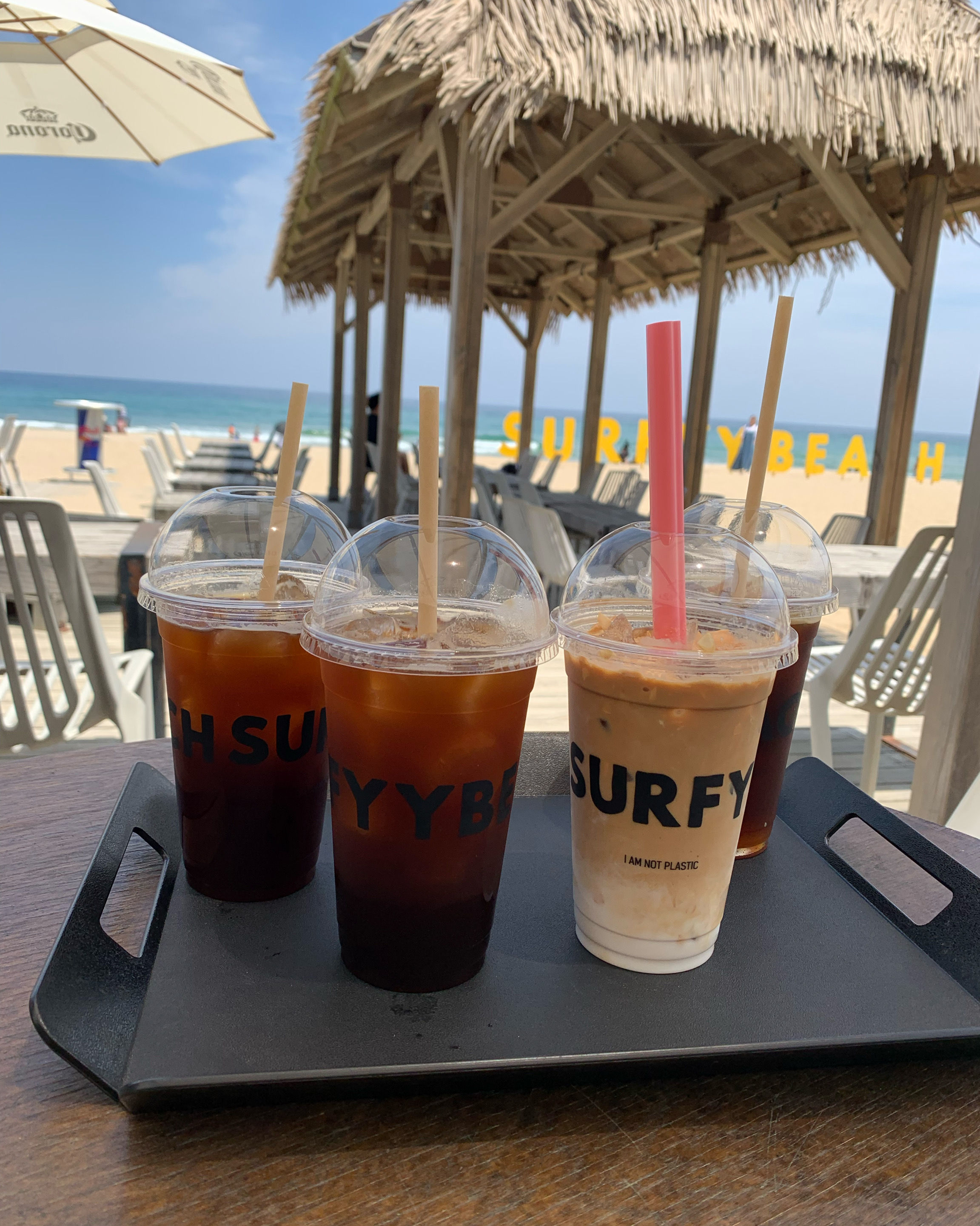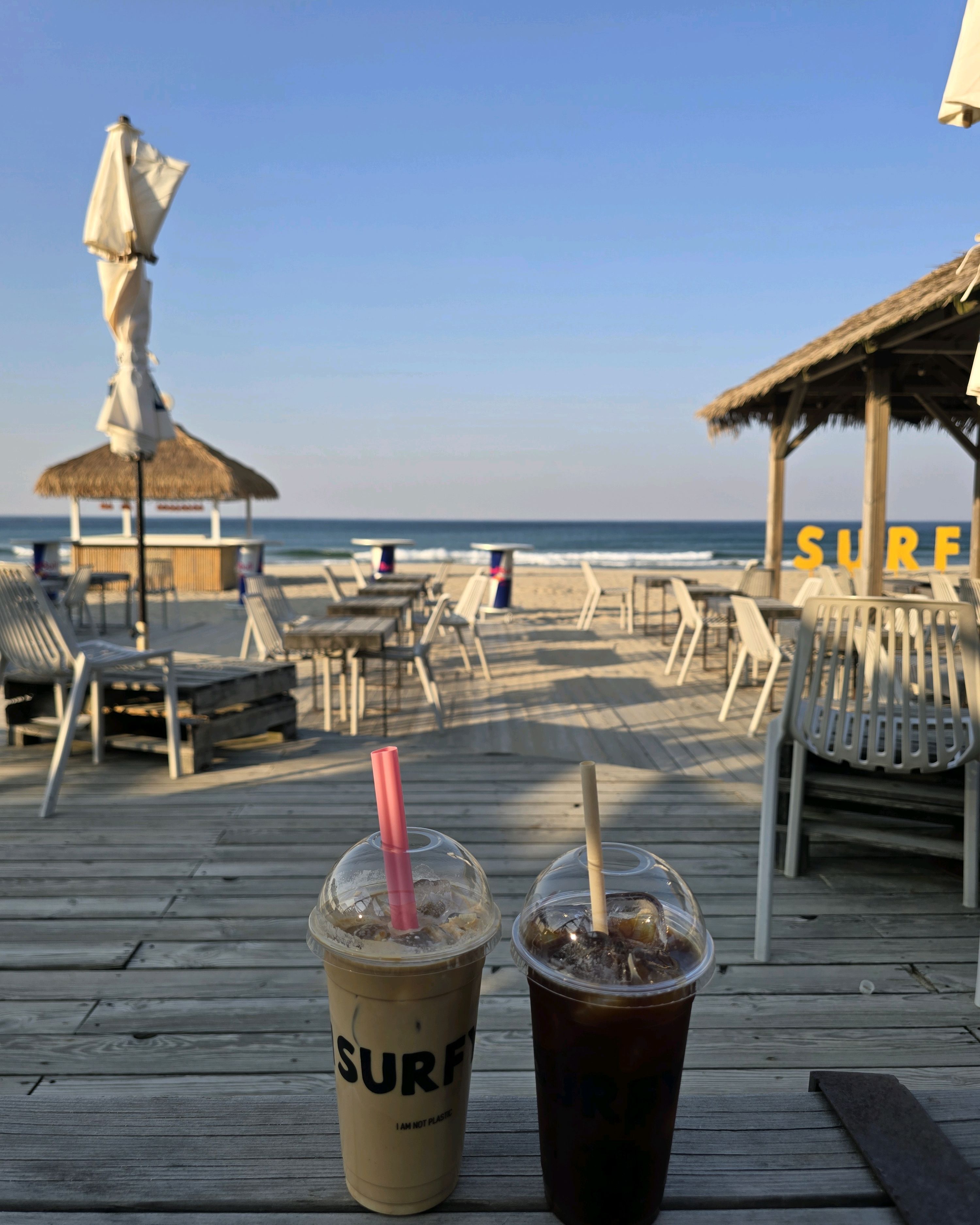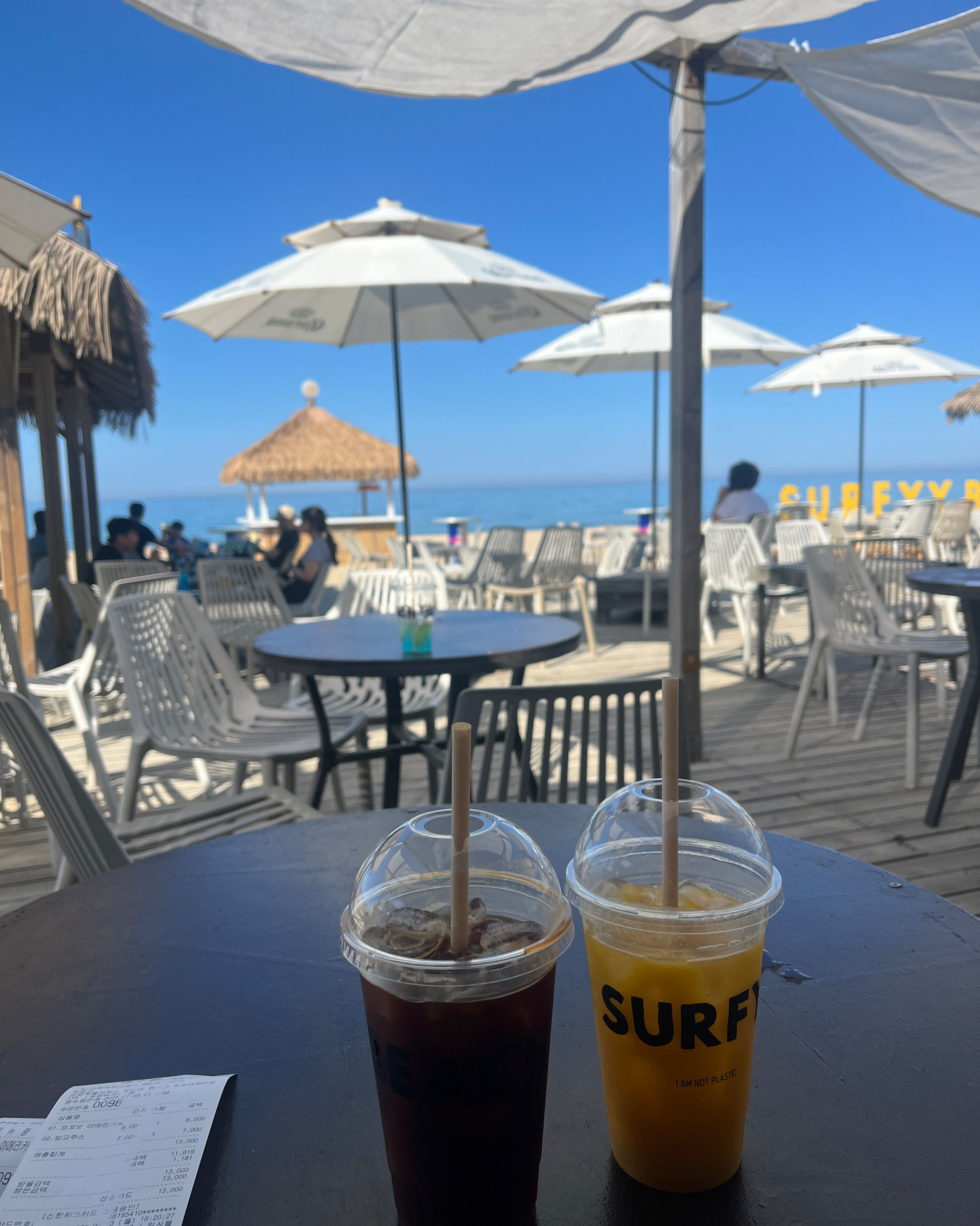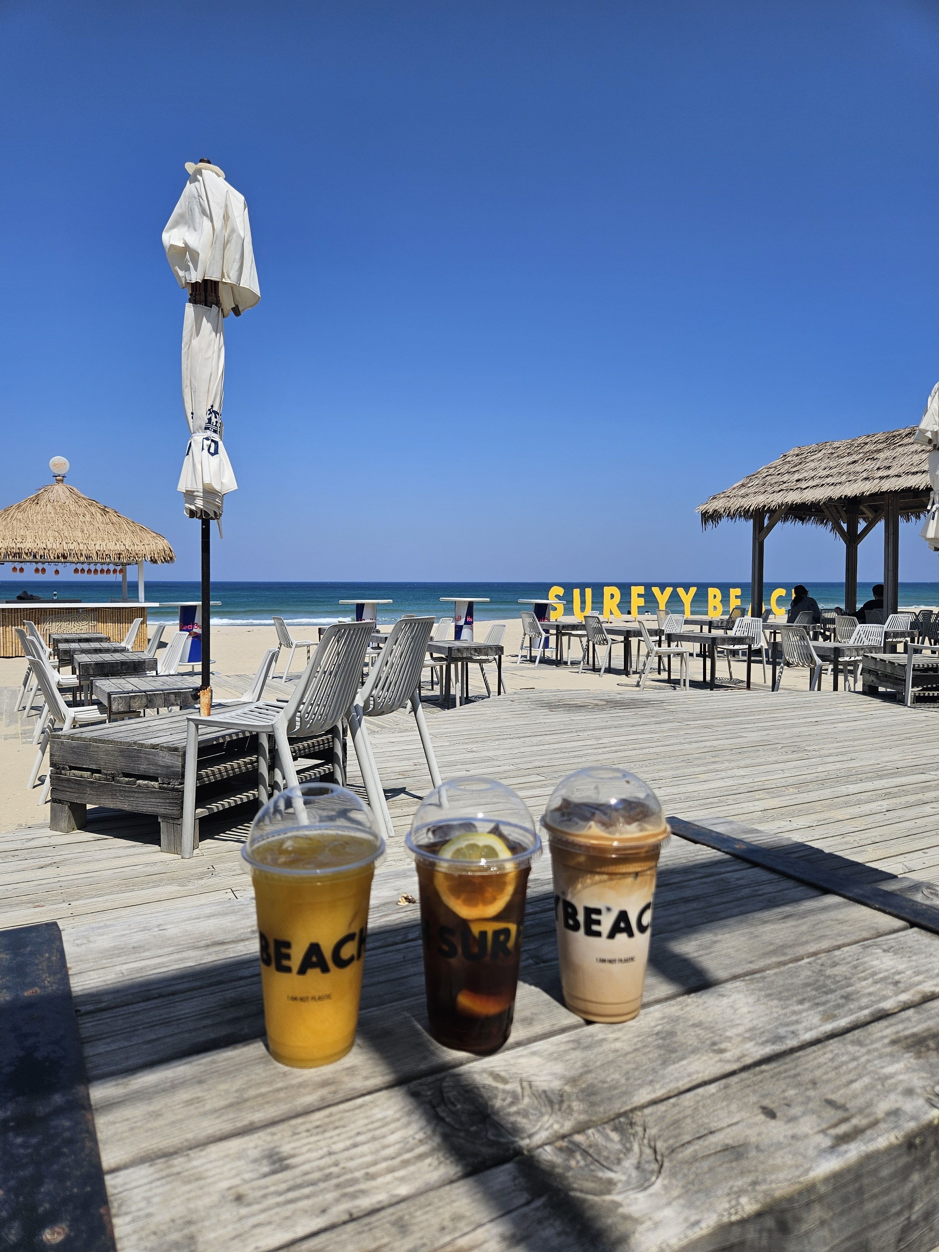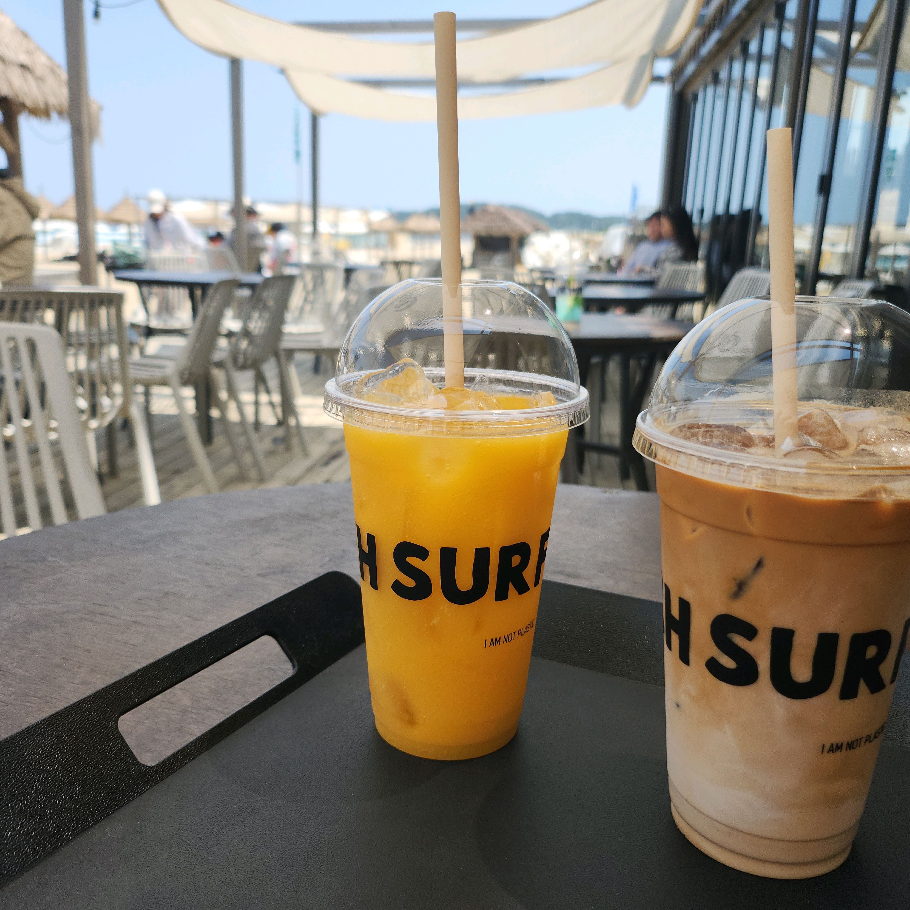 음료수 다 맛있고, 뷰는 통창으로 서피비치가 다 보여서 말할 것도 없습니다! 무엇보다 직원분이 엄청 친절하셔요