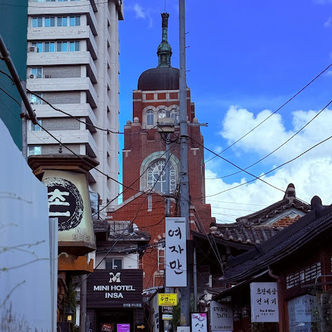저는 호기심이 많은 사람인데, 인사동에 갔을 때 골목길 탐험하는 걸 좋아했습니다. 그러다 우연히 아름다운 교회 건물을 발견하고 그곳으로 향했습니다.