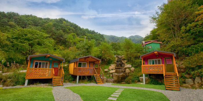 빈티지와 유니크, 프로방스풍의 방마다 색다른 인테리어와 유럽의 어느 시골을 영상케하는 외관은 어디를 서나 포토존이 되어주고 있다. 또한 캠핑장도 준비되어 있어 캠핑체험과 시설을 이용할 수 있다.