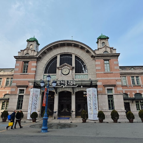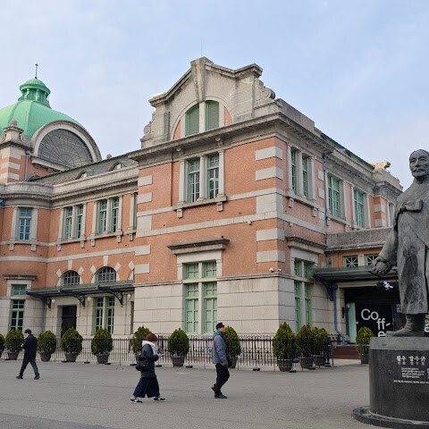 현대적인 서울역 바로 밖에 자리 잡은 아름답고 역사적인 건물입니다. 고풍스러운 붉은 벽돌, 커다란 창문, 그리고 우아한 내부 장식들이 어우러져 마치 시간 여행을 온 듯한 느낌을 줍니다. 분주하고 현대적인 역과는 멋진 대조를 이룹니다.
