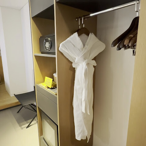 객실 디자인은 전혀 실용적이지 않습니다. 객실 전체에 걸이가 없고 수건걸이가 하나뿐입니다. 코트나 수건을 걸 공간도 없습니다. 동료, 친구 또는 십 대 자녀와 함께 방을 쓰는 경우, 샤워 후 수건이나 옷을 꺼낼 방법이 없어 노출될 수 있으므로 이 방에 묵을 수 없습니다. 절대 다른 사람과 함께 쓰는 방이 아닙니다.