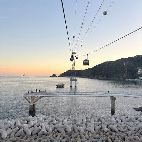 케이블카는 송도해수욕장역과 안산공원역에서 출발하여 송도만을 가로지릅니다. 총 길이는 약 1.62km이며 편도 약 20분이 소요됩니다. 개인실은 완벽한 프라이버시를 제공하며, 송도만의 숨 막히는 전망, 푸른 바다, 그리고 저 멀리 보이는 산들은 모두 감탄을 자아냅니다. 고소공포증이 있으신 분들은 양해 부탁드립니다!