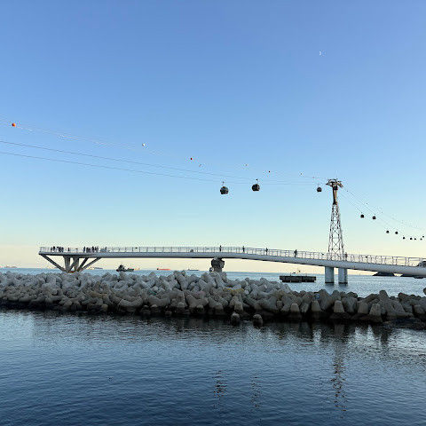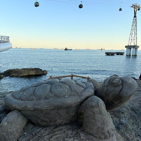 또한 매우 안정적이에요. 반대편까지 가는 데 10분 정도 걸리는데, 꽤 빨라요. 사진 몇 장 찍으면 충분해요. 날씨가 좋으면 사진이 더 잘 나와요. 케이블카에서 내리면 근처에 경치 좋은 곳들과 바다 전망이 좋은 카페들이 많아요.