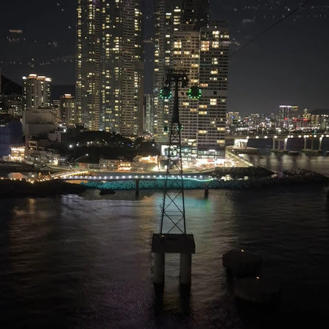 아쉽게도 저녁에 탔어요. 추가금액 지불하고 케이블카 바닥이 투명인 크리스탈 케이블카 탔는데 후회했어요. 앞 일정이 늦어져서 어두워진 다음에 탔는데 어두울때 타면 바다가 하나도 보이지 않아서 투명바닥 크리스탈 케이블카 의미 없어요. 비용만 더 지불했네요 ㅠㅠ 야경이라도 예뻤으면 했는데 감탄절로 나오는 특별한 야경은 아니었어요. 공원은 정말 넓은데 조명이 잘 되어있지 않아서 해진다음 둘러보는 것은 큰 의미 없고 또 가을밤이라 모기 많이물렸어요. 다음에는 기회가 된다면 꼭 맑은날 환한 낮에 다시 타볼래요. 또 아쉬웠던 점은 1층에서 아이스크림 갖고 타도 된다 안내 받아서 아이스크림 사서 2층 탑승하러 올라갔더니 탑승 직전에 직원이 아이스크림 안된다해서 아까운 뵈르뵈르 아이스크림 버렸어요ㅠ 안내 정확히 해주세요