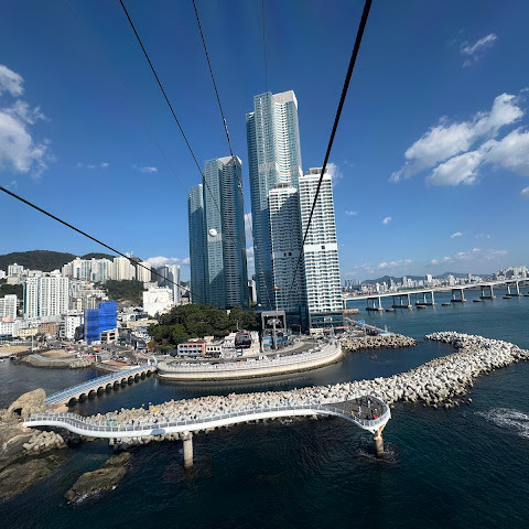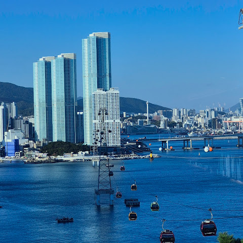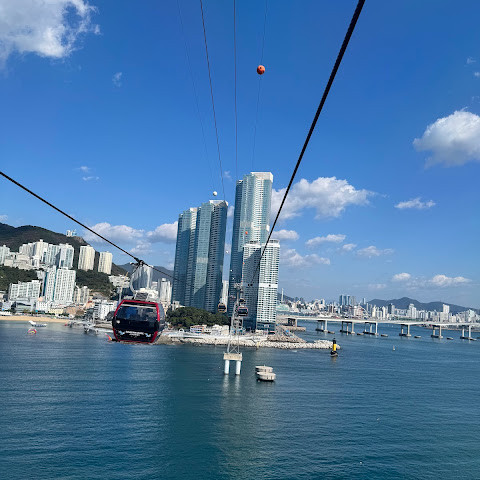 케이블카는 송도해수욕장역과 안산공원역에서 출발하여 송도만을 가로지릅니다. 총 길이는 약 1.62km이며 편도 약 20분이 소요됩니다. 개인실은 완벽한 프라이버시를 제공하며, 송도만의 숨 막히는 전망, 푸른 바다, 그리고 저 멀리 보이는 산들은 모두 감탄을 자아냅니다. 고소공포증이 있으신 분들은 양해 부탁드립니다!