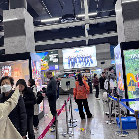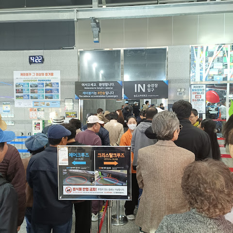 대기는 1시간 정도 했고, 1층에서 발권 할 때 4층 탑승장 가라고만 하셔서 올라와 봤더니 티켓에 적혀 있는 순번 (예를 들어 제 순번이 1004번이면 ~1050번 이런 식으로) 이 뜰 때까지 대기 해야 하는데, 저처럼 안내가 미비한 승객들로 붐벼서 서로 어디로 가야 하나 얼마나 기다려야 하나 묻고 좀 정신이 없었습니다. 각종 언어로 순번이 해당 할 때 입장줄 대기 하라고 안내 해 주셨으면 더 편리 했을 것 같습니다.