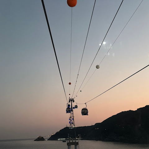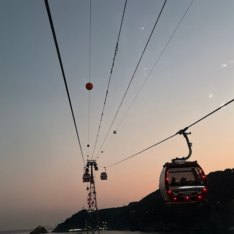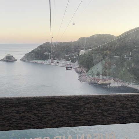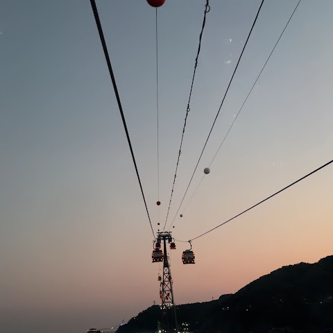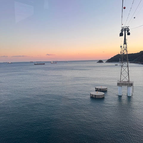 또한 매우 안정적이에요. 반대편까지 가는 데 10분 정도 걸려서 꽤 빨라요. 사진 몇 장 찍으면 끝! 날씨가 좋으면 사진이 더 잘 나와요. 케이블카에서 내리면 근처에 경치 좋은 곳들과 바다 전망이 좋은 카페들이 많이 있어요.