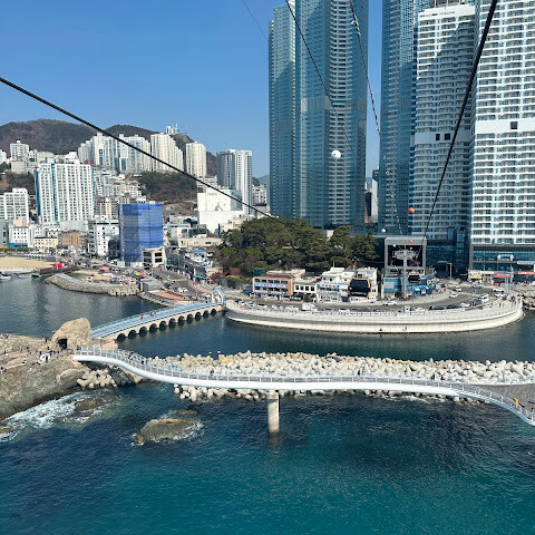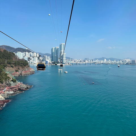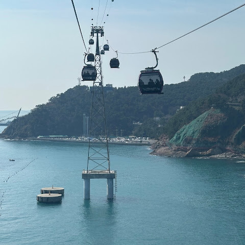 케이블카 탑승 자체는 정말 아름다웠습니다. 부산 해변과 바다 위를 미끄러지듯 지나가면서 멋진 경치를 감상할 수 있었습니다. 하지만 한 가지 주의할 점이 있습니다. 고소공포증이 있다면 추천하지 않습니다. 지상과 바다 위 30~40미터 높이에 있기 때문에 확실히 높이를 느낄 수 있습니다.