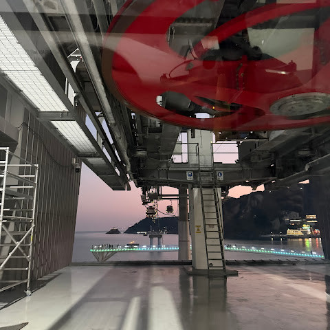 또한 매우 안정적이에요. 반대편까지 가는 데 10분 정도 걸리는데, 꽤 빨라요. 사진 몇 장 찍으면 충분해요. 날씨가 좋으면 사진이 더 잘 나와요. 케이블카에서 내리면 근처에 경치 좋은 곳들과 바다 전망이 좋은 카페들이 많아요.