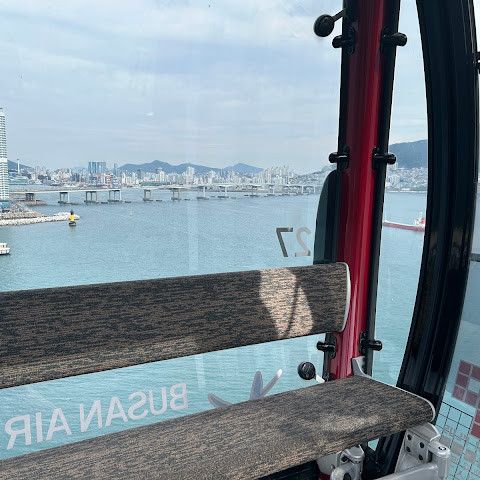 저희는 바닥이 투명한 유리로 된 크리스탈 크루즈 객실을 선택했는데, 스릴을 더하고 싶다면 강력 추천합니다. 86m 상공에서 반짝이는 에메랄드빛 바다 위로 떠 있는 모습은 잊을 수 없을 것입니다. 송도 해수욕장, 남항대교, 울퉁불퉁한 해안선, 그리고 부산의 풍경은 처음부터 끝까지 장관을 이룹니다.