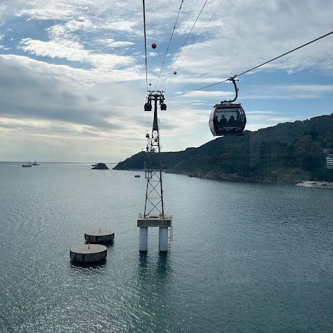 또한 매우 안정적이에요. 반대편까지 가는 데 10분 정도 걸려서 꽤 빨라요. 사진 몇 장 찍으면 끝! 날씨가 좋으면 사진이 더 잘 나와요. 케이블카에서 내리면 근처에 경치 좋은 곳들과 바다 전망이 좋은 카페들이 많이 있어요.