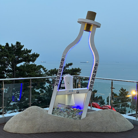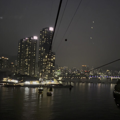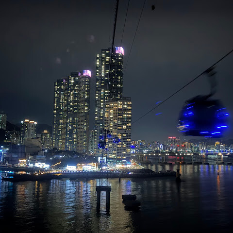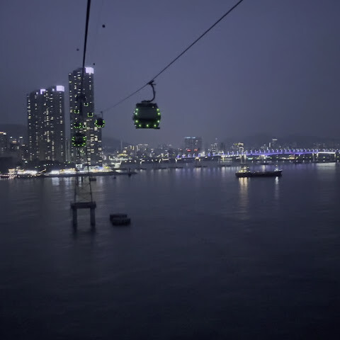 생각보다 너무 괜찮았던 곳. 탑승료가 오픈 할 때 보다 거의 두 배 가까이 올랐다는 부모님 말씀을 깜짝놀라긴했지만 소소하게 사진 찍을 습하지 많아서 좋았다. 사실 케이블카 에서 보이는 풍경이 엄청 아름답다거나 하지는 않다. 깜깜한 바다에 떠 있는 배 몇 쪽과 깜깜한 해수욕장에 있는 건물들 불빛 정도랄까. 그래도 부모님과 함께 보낸 시간은 좋았다.