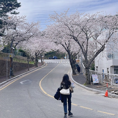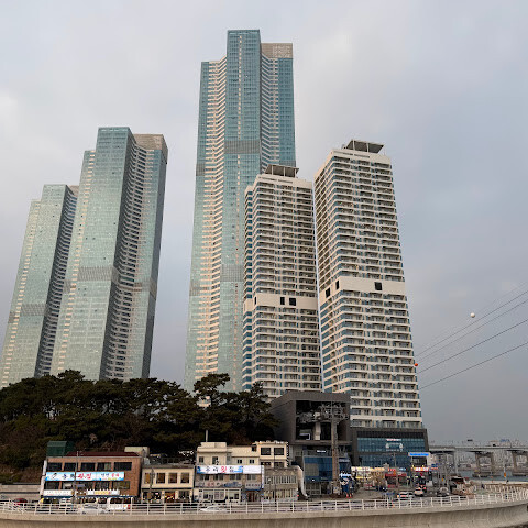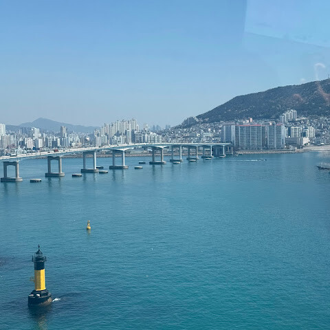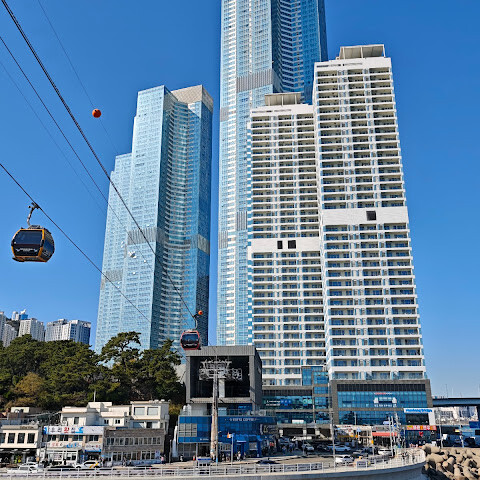 미리 티켓을 구매하시는 걸 추천드려요 (크리스탈 마차를 추천합니다). 줄은 그리 길지 않아요. 저는 4월 초에 갔었는데, 길 건너편에 벚꽃이 만개한 모습을 볼 수 있었어요. 부산에 완전히 반했답니다.