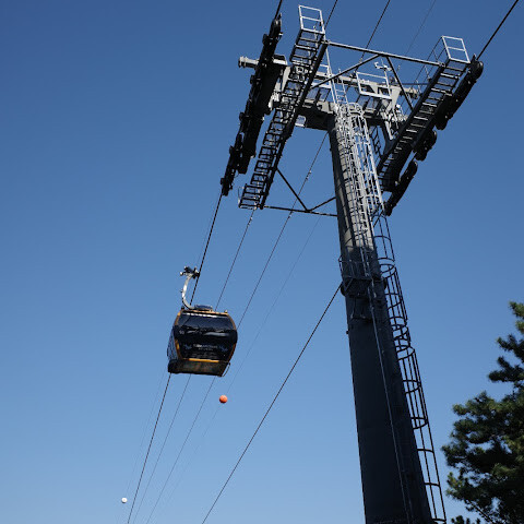 정상에 있는 베이 스테이션 근처에서 내리는 버스를 타세요. 편도 요금은 13,000원이었고, 달콤한 간식을 선물로 주셨어요. 경치가 정말 좋았는데, 가기 전에 날씨를 확인하는 걸 추천해요. 케이블카는 해변으로 내려가는데, 근처에 산책로와 식당들이 있어요. 버스를 타려면 조금 걸어야 해요.