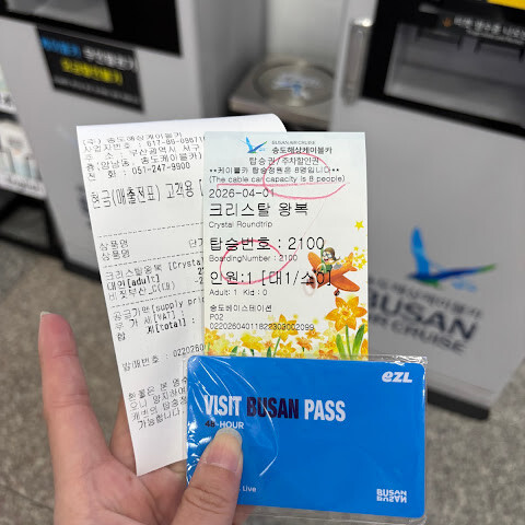 부산 방문 패스를 사용해서 크리스탈 캐빈 왕복 티켓을 구매했습니다.