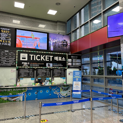 2026년 4월 1일 ☁️ 부산 패스가 있으면 카운터에서 티켓을 무료 왕복 티켓(크리스탈 캐빈)으로 교환할 수 있어요. 사람이 많지 않아서 줄이 없었어요. 오후 6시 15분쯤 도착했는데, 날씨가 좋으면 일몰도 볼 수 있을 거예요 😫