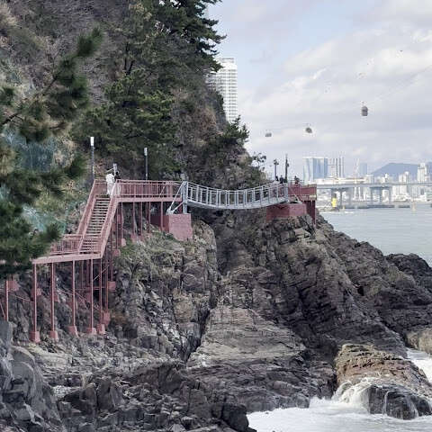 거리는짧은데 뷰가좋네요.. 부산놀러간김에 들러봤는데 먹거리식당도많고 해안가로 걷기좋게 데크도 잘되어있어서 날씨풀리면 걷는것도 좋을거같아요.