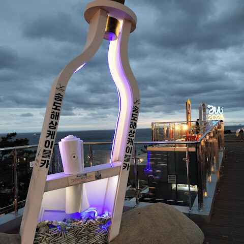 꼭 타보세요! 야경도 아름답지만, 바다를 한눈에 담으려면 낮에 타는 걸 추천해요! 케이블카 꼭대기에서 어린 왕자와 사진 찍는 것도 잊지 마세요!