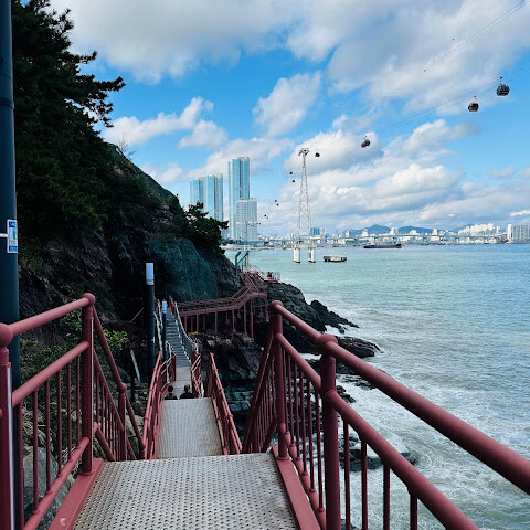 송도만역에 간 주된 이유는 해안 경관 때문이었는데, 정말 기대 이상이었습니다. 케이블카는 타지 않고 주변을 둘러보기로 했습니다. 전망대 끝까지 걸어간 것이 가장 좋았습니다. 산책로 곳곳에 멋진 포토존이 마련되어 있어 바다와 머리 위로 지나가는 케이블카를 배경으로 아름다운 사진을 찍을 수 있었습니다. 독특한 조형물과 포토존 덕분에 더욱 즐거운 경험이었습니다. 케이블카를 타지 않고도 부산 해안선의 아름다운 풍경을 사진에 담을 수 있는, 여유롭게 산책하기 좋은 곳입니다.
