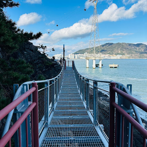 총 길이 약 1.62km의 이 케이블카는 한국 최초의 해상 케이블카입니다. 8~15분 정도 소요되는 탑승 시간 동안 송도만과 부산 도심의 아름다운 전경을 감상할 수 있습니다.