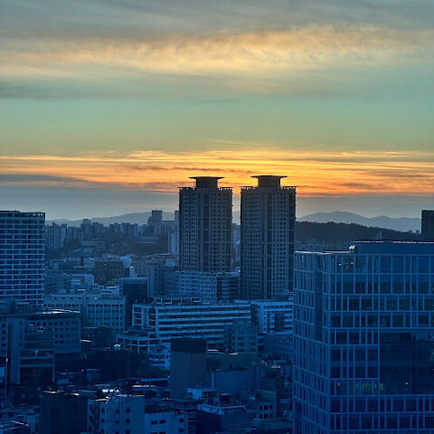 서울에 있는 우리의 행운의 호텔. 2025년 12월 4일 목요일 저녁 6시쯤 도착했는데 눈이 내리기 시작했어요!!!