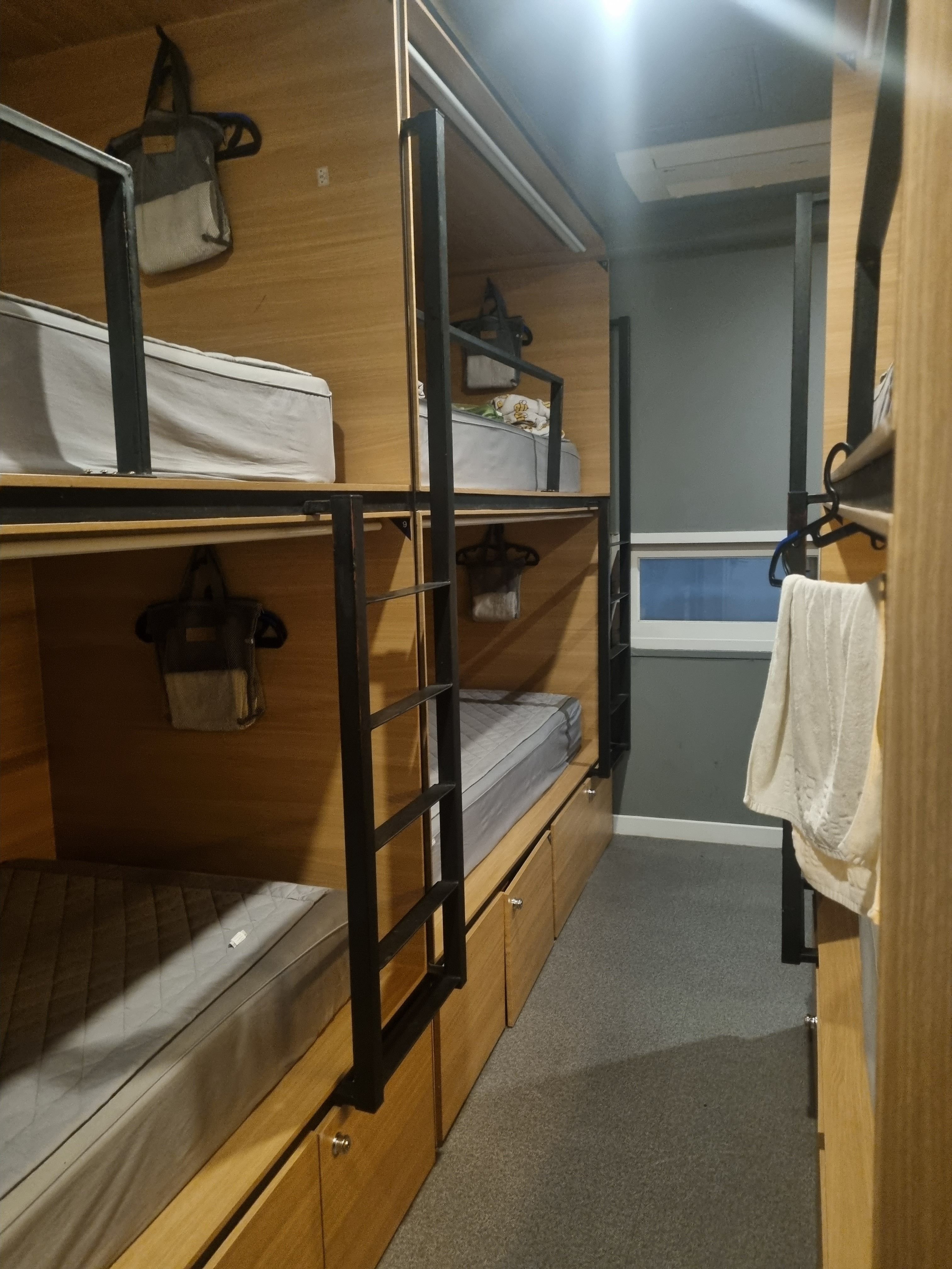 샤워할 때 너무 추웠고 전체적으로 추운 기운이었지만 침대마다 커텐이 있어서 조용히 잘 쉬다 갑니당 주인 분도 친절해서 매우 만족한 숙소였어요