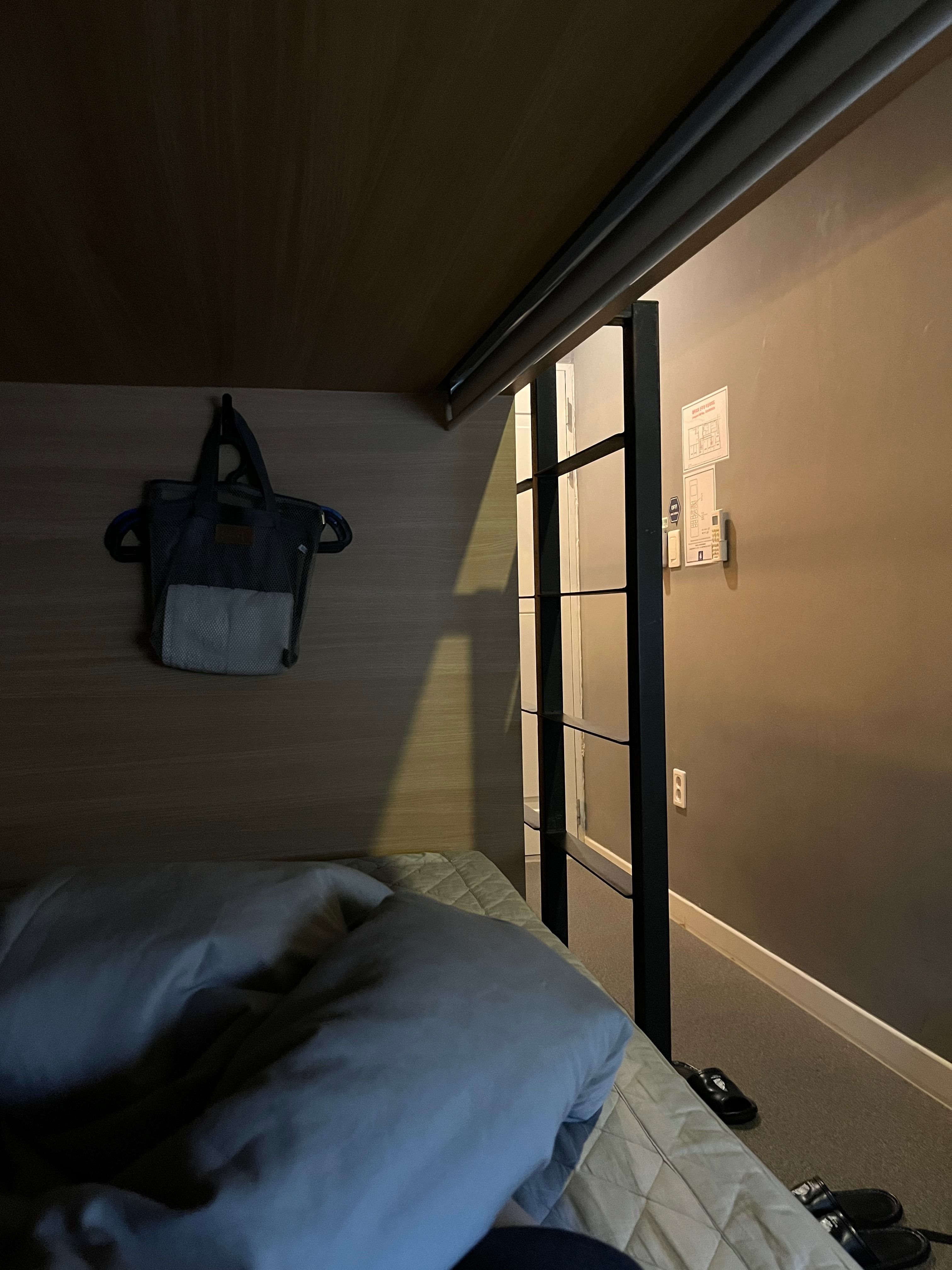 좋은 호스텔, 멋진 침대. 캡슐 공간은 롤러 블라인드로 닫을 수 있습니다. 완전히 셀프 서비스 체크인입니다. 매우 쉽습니다. 객실도 깨끗하고 깔끔하며, 위생시설도 깔끔하고 깨끗합니다.