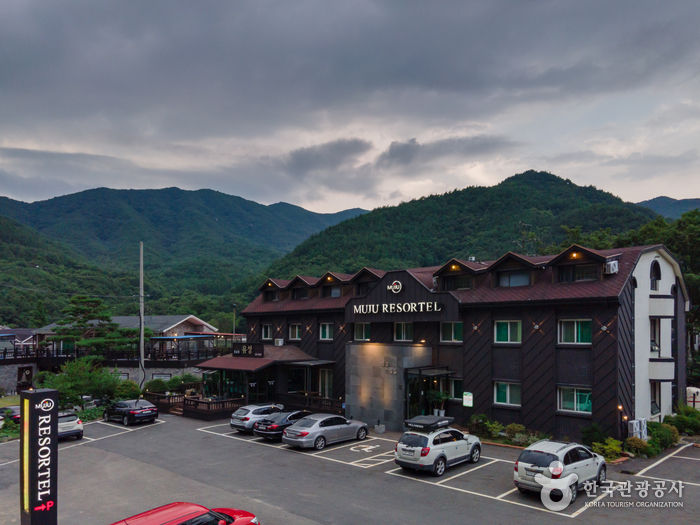 무주리조텔은 무주덕유산리조트 인근에 위치해있다. 높은 고도에 있는 만큼 맑은 공기와 계곡 소리에 자연의 정취를 마음껏 느낄 수 있다. 감각적이고 모던하게 꾸며진 객실과 깨끗하게 세탁된 최고급 침구류가 안락함과 편안함을 제공한다. 산책과 겨울철 스포츠를 위한 여행객을 위해 든든한 조식을 제공하고, 조식 이외의 시간에는 한식당 레스토랑을 이용하면 된다.