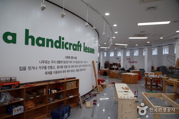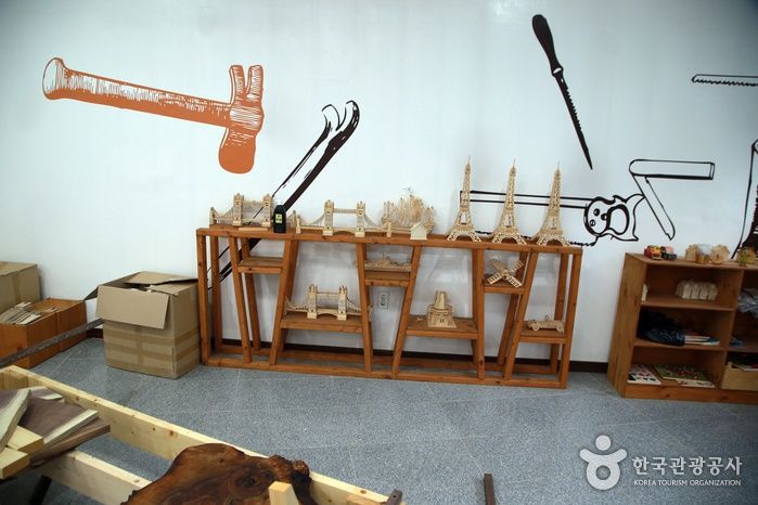화천목재문화체험장은 우수한 화천의 목재를 활용해 나만의 생활가구나 목제품을 만들 수 있는 목공예 체험장이다. 아이들에겐 신나는 나무놀이터, 어른들에겐 목공예에 더욱 많은 지식을 쌓을 수 있는 전문 공방으로써 손색이 없다. 동그란 건물외관은 켜켜이 쌓은 나무 마감재로 따스한 느낌을 전해준다. 1층에는 목공예를 할 수 있는 DIY 체험장이 운영되고 있다. 아이들 가구, 책꽂이, 독서대, 나무스피커, 수제나무도마 등 원하는 제품을 직접 만들어 볼 수 있다.