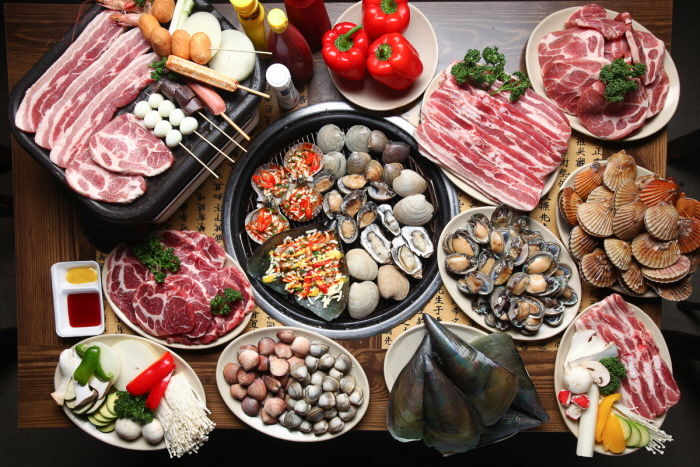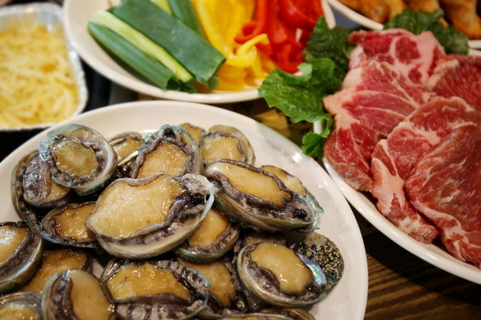 수원조개구이무한리필은 홍콩조개로 더욱 많이 알려져 있으며, 신분당선 광교역 1번 출구앞 리치프라자1차 2층에 위치해 있다. 당일 공수한 신선한 전복, 키조개, 가리비등 20여 가지의 조개류를 무한리필로 즐길 수 있는 뷔페 음식점으로, 이외에도 삼겹살, 갈비, 목살등 다양한 사이드 메뉴가 준비되어 있어 푸짐한 한상 차림으로 즐길 수 있다. 160명 동시 수용할 수 있는 공간으로 각종 모임과 단체 회식을 위한 장소로도 적합하다. 또한 무한리필로 운영되지만 시간 제한없어 부담없이 육해공 구이를 맛볼 수 있다.