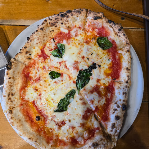 우리는 점심시간에 식당에서 식사를 했습니다. 이곳은 이탈리안 레스토랑입니다. 메뉴에는 피자, 파스타, 샐러드, 칩을 곁들인 닭고기 요리가 있습니다. 메뉴가 다양하지 않고, 요리 선택이 제한되어 있습니다. 타분에서 만들어지는 마르게리타 피자를 주문했어요. 피자는 매우 맛있었습니다. 음식은 도착하는데 오랜 시간이 걸리지 않았습니다. 음식이 준비되면 삐 소리가 나는 부저가 울렸고, 음식을 찾으러 계산대로 갔습니다. 그 후 우리는 주방 입구에 있던 카트로 음식 트레이를 옮겼습니다. 레스토랑 내부와 외부에 좌석이 있다는 점에 유의해야 합니다.