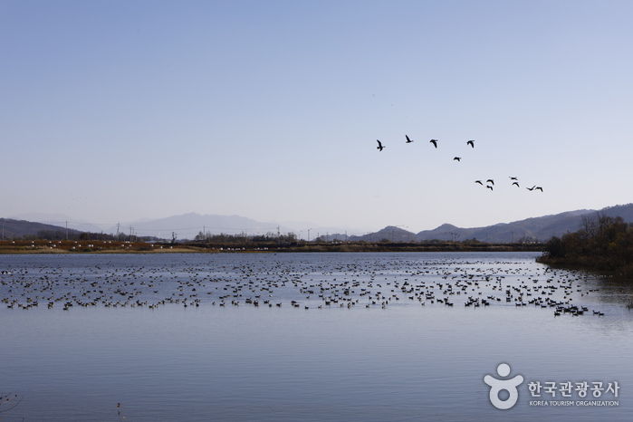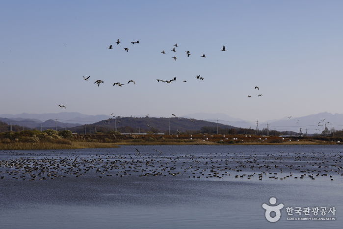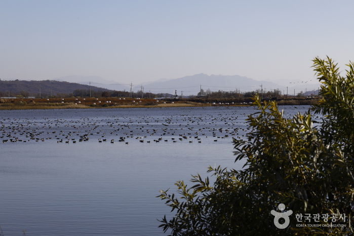 "황해남도 삼천군 신명천 상류에 있는 이 저수지는 일제 강점기에 축조하였으나 전란으로 기능이 쇠락했고 수복 후 민통선 북방의 입주영농과 출입영농이 이루어지면서 1970년대의 대규모 저수지 건설(산명지·토교지·동송지)과 함께 민통선 내 수리안전답을 위해 보강된 인공저수지이다. 저수지의 기본 물원천은 강수며 접수구역 안에는 2개의 작은 저수지가 있어 신명저수지의 물을 조절하거나 보충하고 있다, 수혜면적 328ha, 저수량은 3,720천톤으로 산명리. 중세리. 대마리 일원에 농업용수를 공급한다. 이곳 주변에는 소나무, 참나무, 잎갈나무, 밤나무들이 울창하게 우거져 숲을 이루고 있어 자연 그 자체를 만끽할 수 있다."