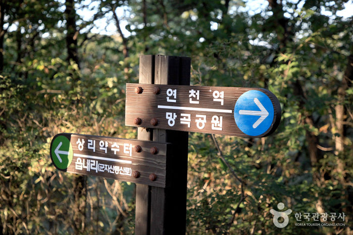 망곡산은 구한말 고종황제와 순종황제의 국상을 당했을 때 주민들이 이 산에 올라 서울을 바라보며 통곡했다 하여 망곡산이라 부른다. 연천역에서 바라본 망곡산은 봄에는 벚꽃이 만개한다. 연천역 뒤편으로 경원선 철길 건너편에 위치한 이곳은 근린공원으로 조성한 숲 등산로가 있다. 전망대까지 완만하게 10여 분 정도 오르면 되기 때문에 부담 없이 산책할 수 있는 길이기도 하다. 특히 망곡산에는 사색의 오솔길이라는 자그마한 소로길과 체육공원 정상의 팔각정 등이 조성되어 있어 일상의 상념에서 벗어나기에 부담이 없는 코스이다.