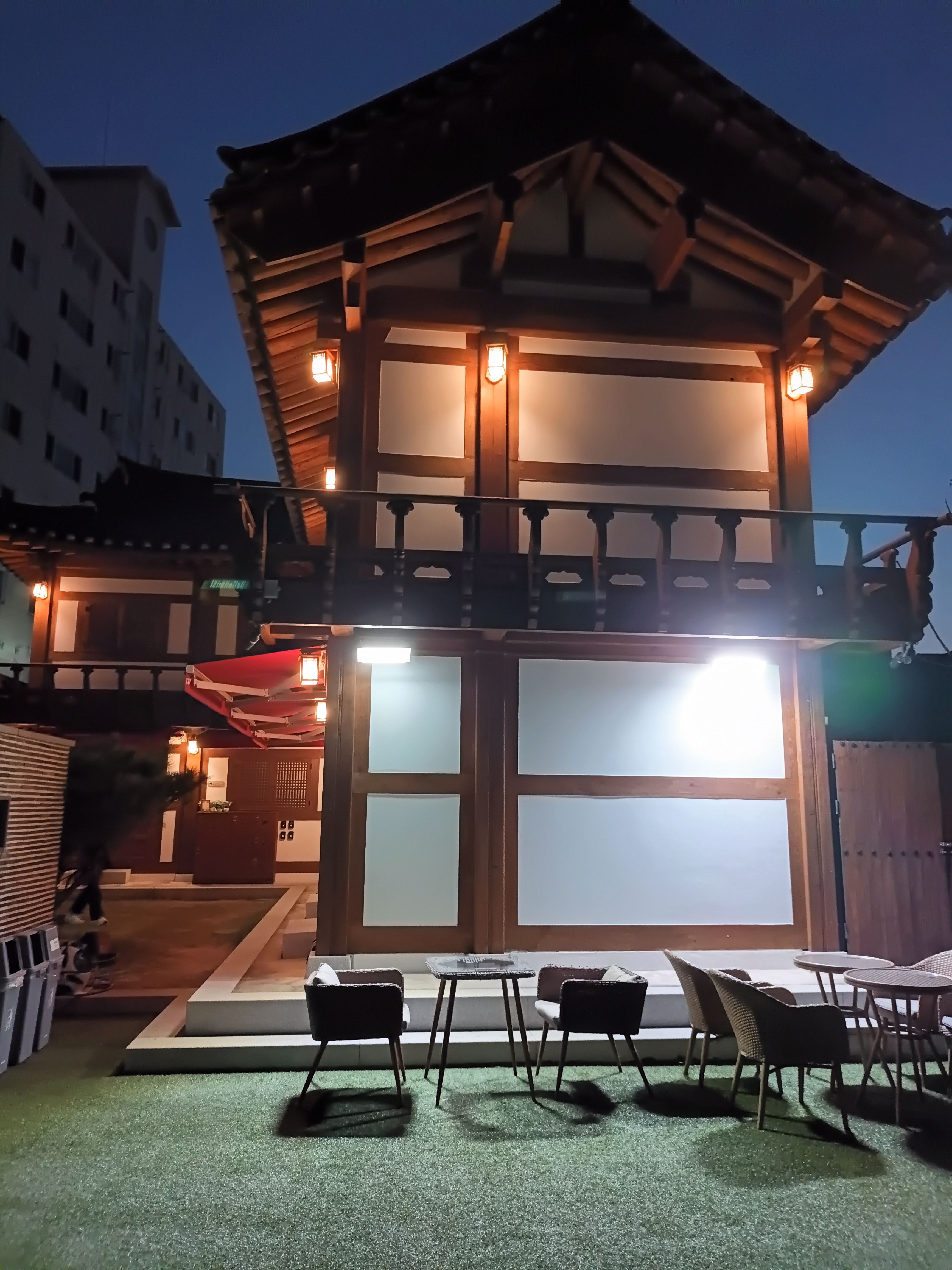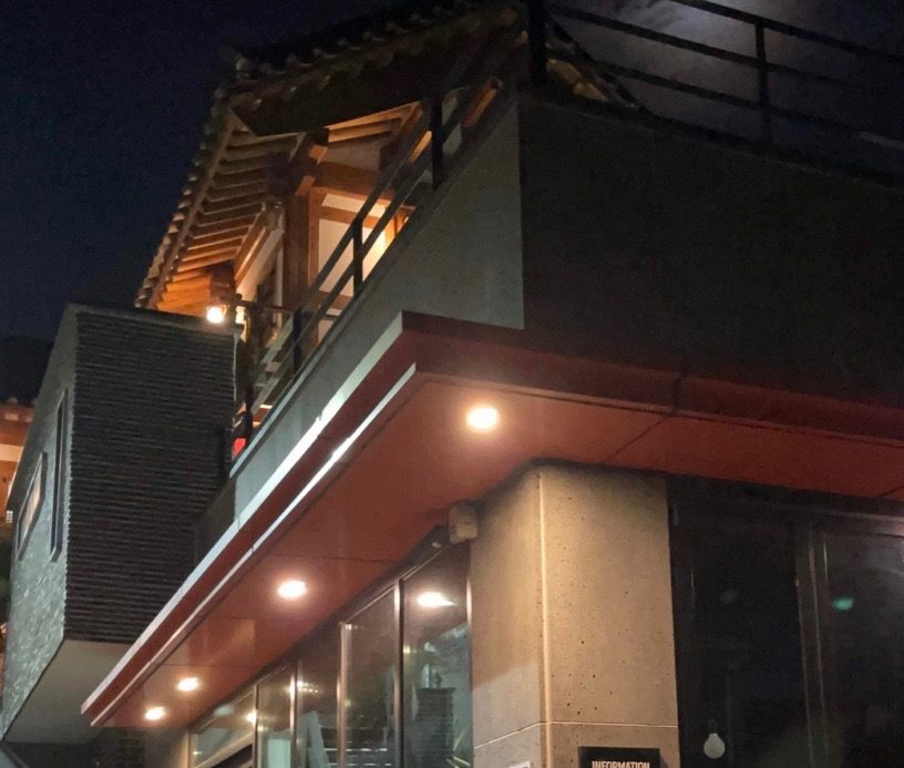 저녁에 도착했는데 은은한 조명에 건물이 너무 예쁘더라구요 !!