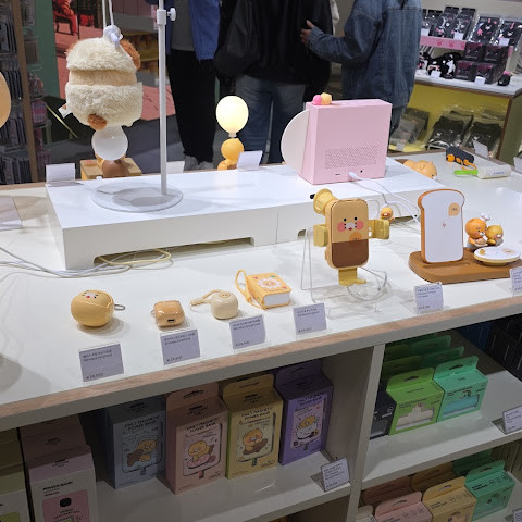 귀여운 물건과 폰 케이스를 사기에 좋은 또 다른 곳은 카카오 프렌즈예요. 귀여운 물건들뿐만 아니라 3층에는 커피와 케이크를 파는 카페도 있어요 🍰