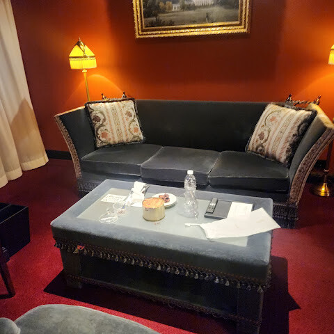 이번에는 작은 방(여전히 넓고 수납공간도 충분하고 욕실도 넓습니다)을 받았는데, 좀 더 낡았습니다. 침대 옆 탁자에 있는 콘센트가 전혀 작동하지 않아서 방 반대편 구석에서 휴대폰을 충전하기가 불편했습니다.