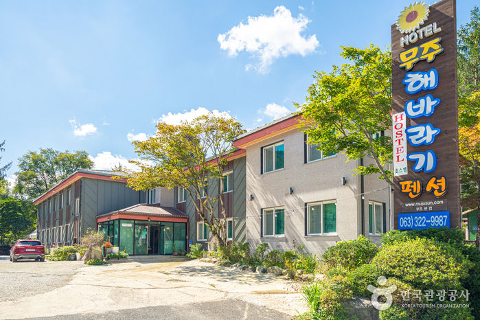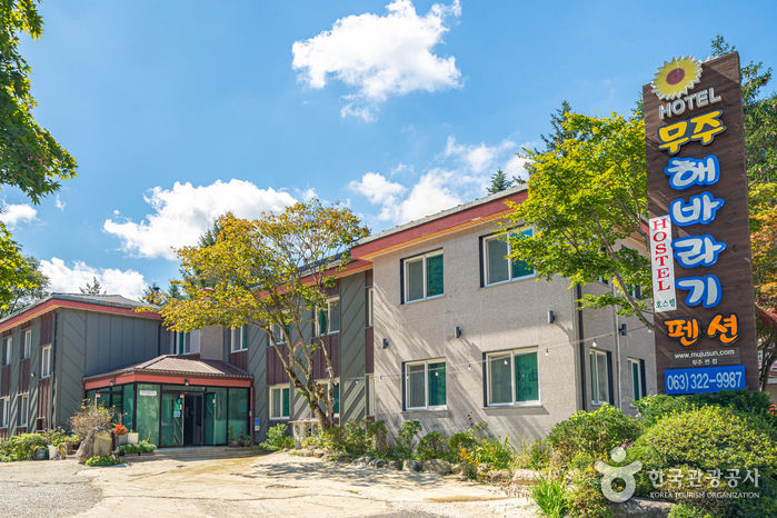 무주 해바라기펜션 호스텔은 무주구천동 관광단지 안에 자리한 가족형 휴양 펜션으로, 모두 온돌로 구성되어 있다. 구천동 계곡 상류에 자리하여 청정한 자연 속 무주의 아름답고 웅장한 풍경을 감상하며 힐링하기에 좋다. 여름1철 물놀이를 위해 계곡 가까이에 데크를 설치해놓았다. 직접 채취한 산약초로 정성껏 만든 약초차를 무료 제공하고, 카페에서 토스트, 달걀프라이, 커피 등 셀프로 조식을 해결할 수 있다.