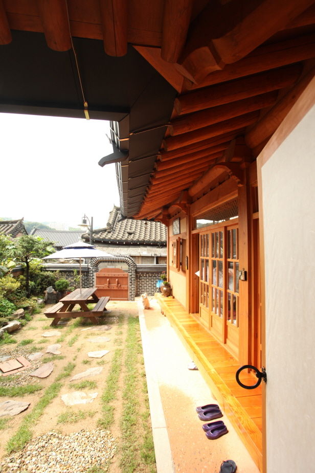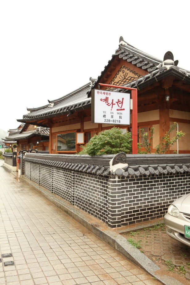 전주 오목대 아래 자리한 예다원은 숙박과 전통문화체험을 동시에 즐길 수 있는 한옥스테이다. 서까래와 대들보가 드러난 천장, 한지 벽면, 수묵화나 서예작품 액자 등이 한옥 고유의 멋을 선사한다. 특히 연화방에 있는 산수화가 그려진 8폭 병풍과 큰 수묵화 액자가 인상적이다. 다도, 천연염색, 한지, 다식, 화전 체험 등 다양한 전통 프로그램을 유료로 운영한다. 도보로 전주향교, 전주 한벽문화관, 경기전 등으로 이동할 수 있다.
